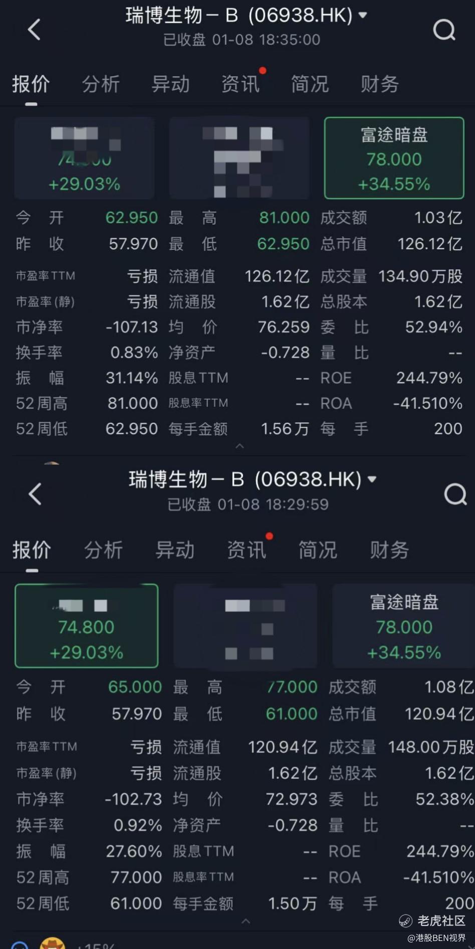 观察今日暗盘,一个特别之处引人注目:成交额和换手率异常活跃。以瑞博生物-B为例,该股采用机制b 10%发行,公开发售部分274.88万股,总发行额约1.43亿元。然而,富途暗盘成交额高达1.03亿元,HL暗盘1.08亿元,两者合计2.11亿元,竟比公开发售货量多出47%。换手率两者加起来约1.8%。