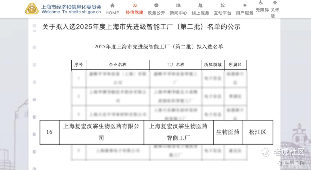 近日,上海市经济和信息化委员会公示2025年度上海市先进级智能工厂名单,复宏汉霖松江基地成功入选,成为2025年度唯一获评该称号的生物医药领域工厂。此次入选,标志着复宏汉霖在自动化、信息化和智能化转型方面取得重要的阶段性成果,充分彰显了公司在生物制药智能制造领域的领先实力。