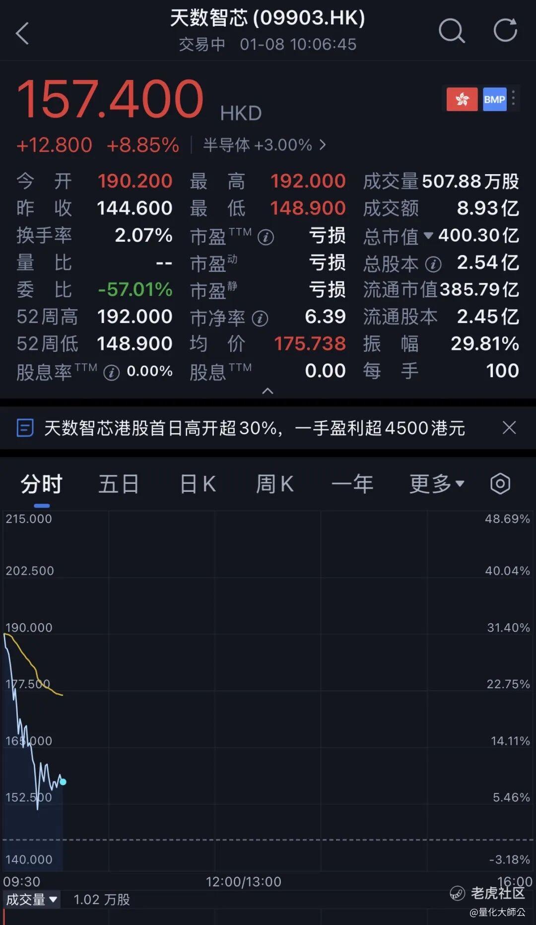 芯东西1月8日报道,刚刚,上海GPU龙头天数智芯在港交所挂牌上市。