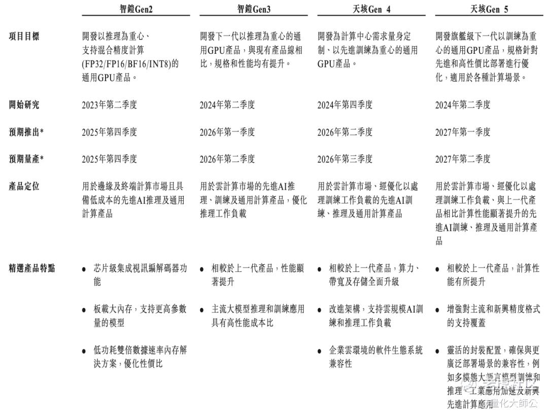 第一代:天垓Gen 1于2021年9月量产,作为中国首款实现量产的通用GPU产品,其证明了通用GPU核心功能国产化的可行性,打通了技术链路。2022年,智铠 Gen 1及Gen 1X推理系列相继问世,天数智芯随之构建起云边结合、训推一体的完整算力系统,成为国内唯一拥有该完整通用算力体系的提供商。