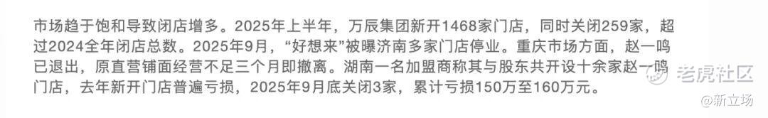 不难看出,晏周和赵定精心策划的这场“普惠游戏”,正变得越来越难。无数加盟商押上家庭积蓄,协助鸣鸣筑起了万店帝国的地基,自己却困在日益延长的回本周期里。他们不仅要面对外部的激烈竞争,还要时刻担忧,总部为了冲刺整体GMV,会不会在五百米内再扶持一家“兄弟门店”,亲手稀释自己赖以生存的客流。