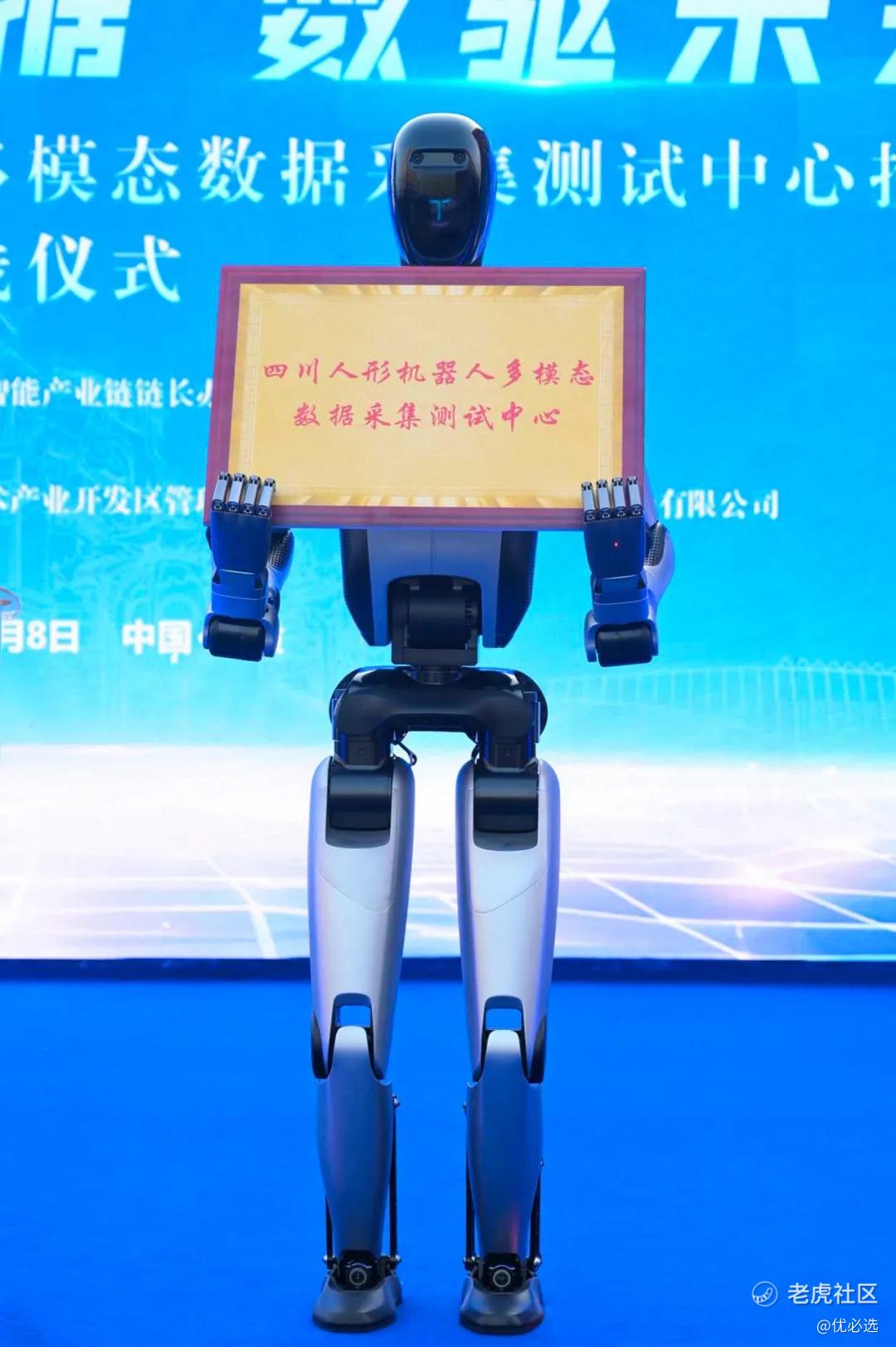 在启动仪式环节,一台Walker S2稳步走上舞台,手举“四川人形机器人多模态数据采集测试中心”牌匾,宣告中心全面启用。