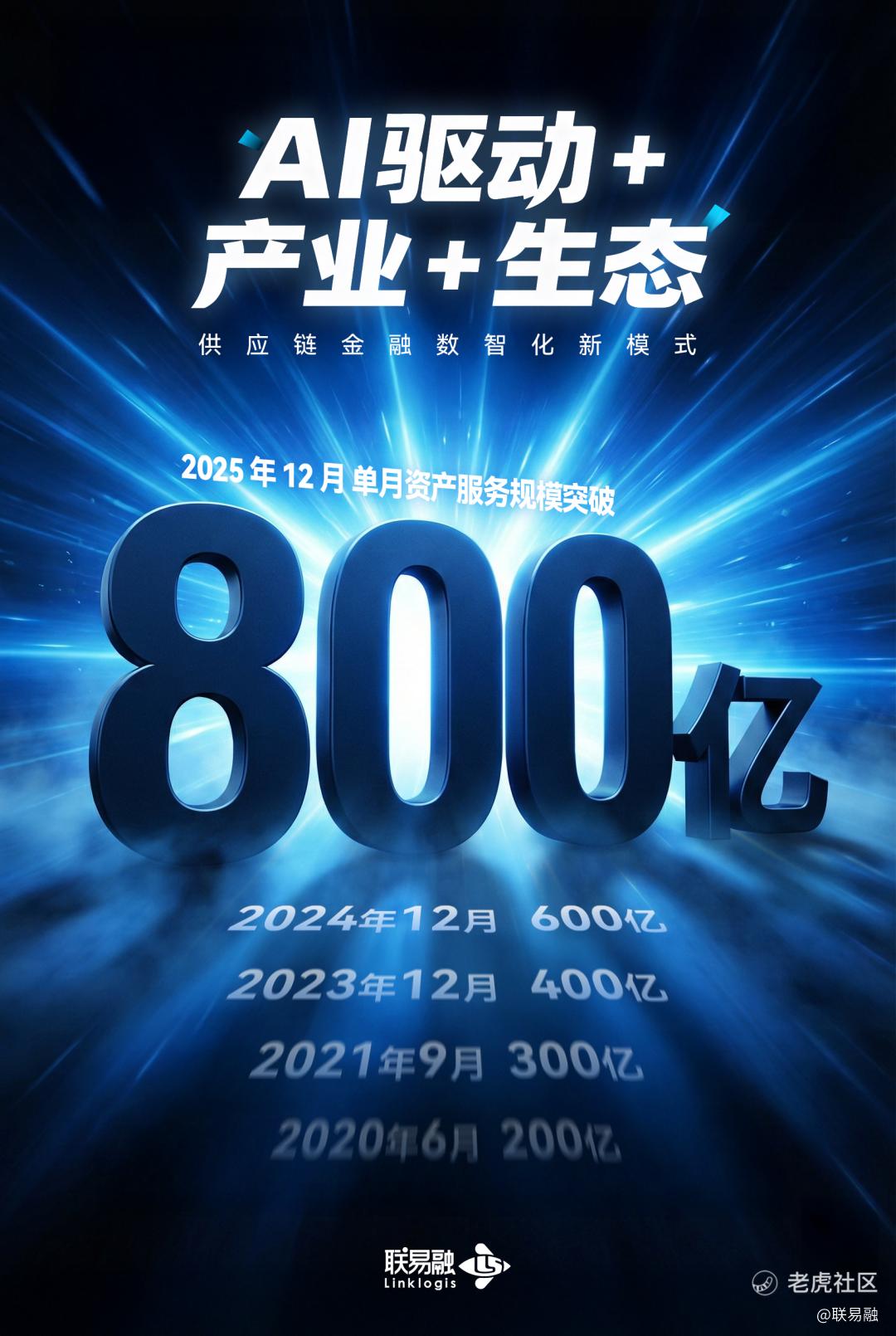 最新数据显示,2025年12月,联易融单月供应链资产服务规模首次突破800亿元大关,标志着公司在科技赋能供应链金融领域再攀高峰。这一里程碑式突破,不仅延续了公司自2020年以来单月资产服务规模阶梯式跃升的强劲势头,更凸显了联易融以AI创新驱动业务扩张、以生态协同赋能产业发展的核心竞争力。