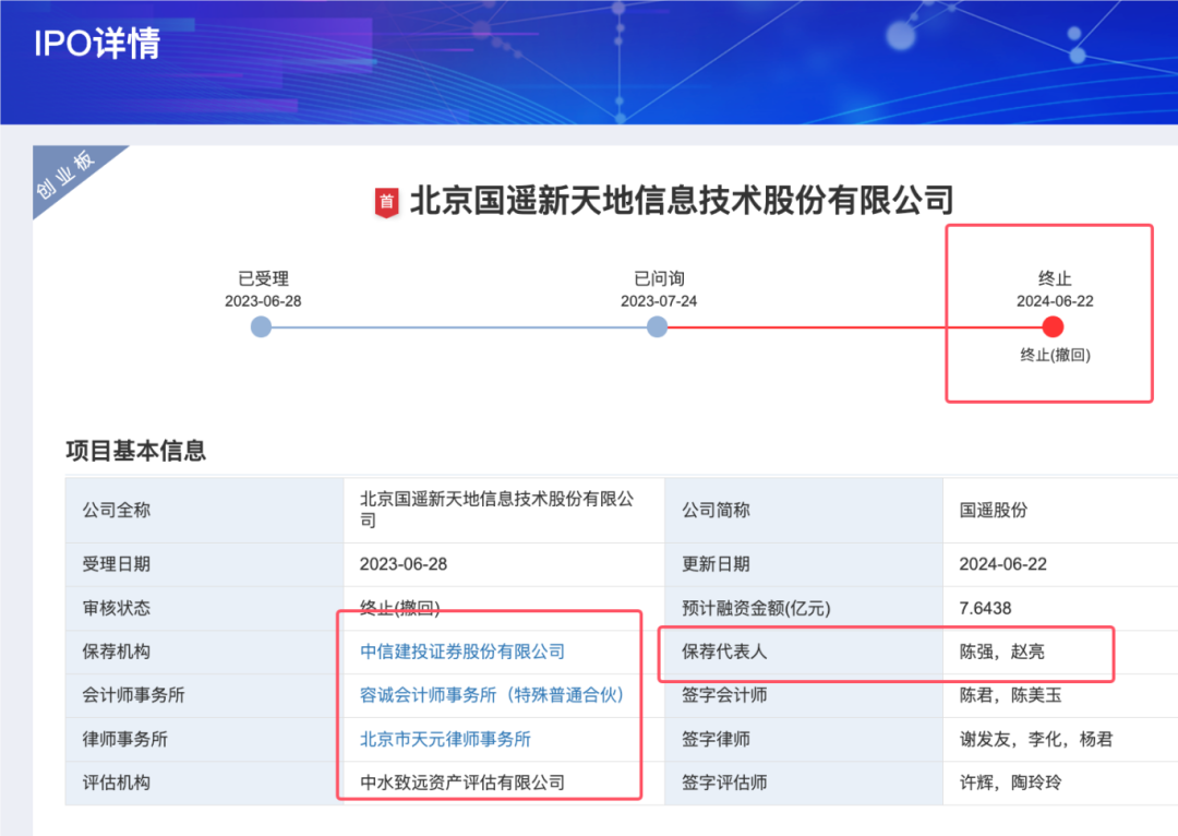2023年6月28日:国遥股份向深交所提交创业板IPO申请并获受理,保荐机构为中信建投。