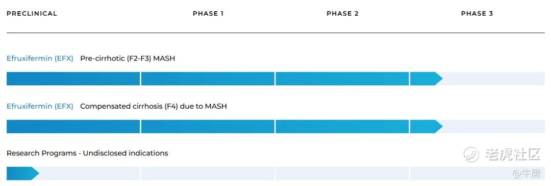 公司核心项目Efruxifermin(EFX)是原安进公司开发的AMG876,用于代谢功能障碍相关的脂肪性肝炎(MASH)的治疗,是一种FGF21-Fc融合蛋白,通过将人IgG1 Fc结构域与经过修饰的人FGF21相连接,实现了相较于天然人FGF21更长的半衰期和更强的受体亲和力。