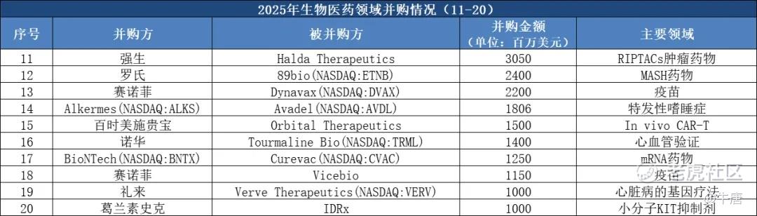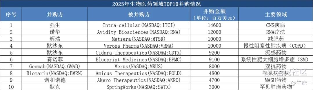 2025年,生物医药领域共发生46起并购事件,并购总额达1136.06亿美元。