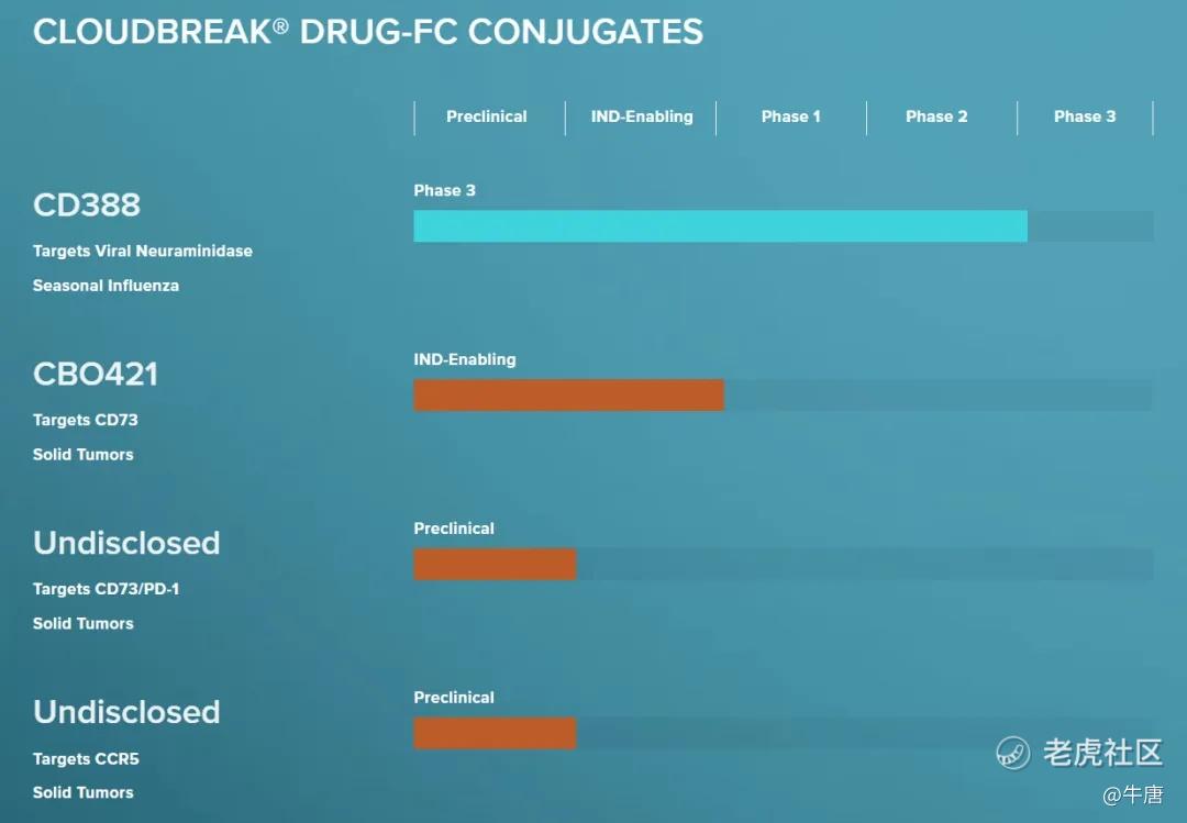 公司核心药物CD388由一种小分子神经氨酸酶抑制剂zanamivir组成,该抑制剂与一种旨在预防甲型和乙型流感的人源抗体的专有Fc片段稳定结合。