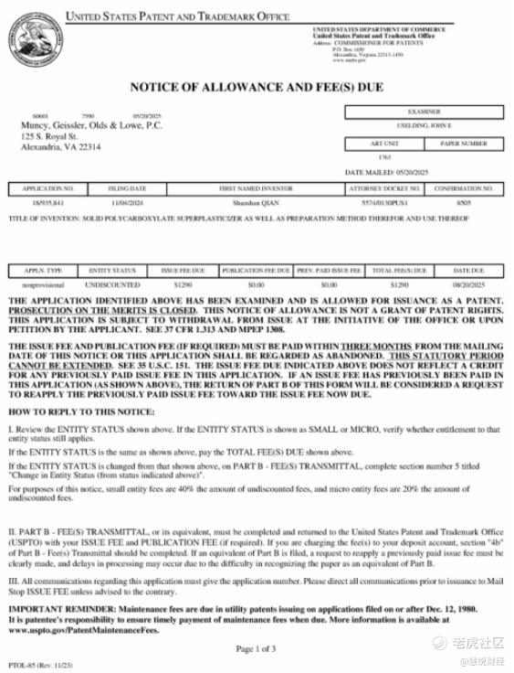 公司的发明专利<> (-种固体聚羧酸减水剂及其制备方法和应用)成功获得美国专利授权,该专利是海螺集团获得的首个美国专利,标志着公司知识产权保护在高端市场取得了新突破,技术水平达到世界前沿。