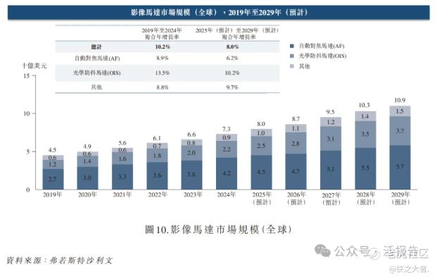 根据弗若斯特沙利文(Frost & Sullivan)的报告,2019年,全球影像马达的市场规模约为45亿美元,到2024年增长至73亿美元,复合年增长率为10.2%。预计2025年至2029年市场将继续增长,复合年增长率预计为8.0%,到2029年市场规模约达109亿美元。