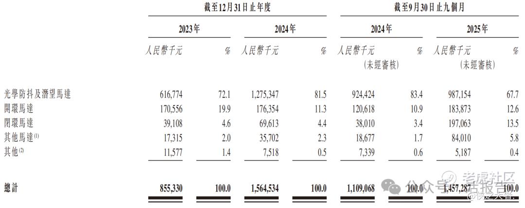 于往绩记录期间,公司的绝大部分收入产生自影像产品,尤其是光学防抖马达及潜望马达、开环马达及闭环马达。