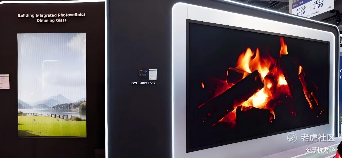 在公共与商用显示方面,光伏调光幕墙采用领先的钙钛矿光伏技术,具有“弱光发电”的独特优势;BYH ULTRA P0.9 MicroLED显示屏在呈现精细画质的同时,显示亮度为600尼特时,功耗低至180W/m²,兼顾视觉健康与节能需求。38.2英寸反射式咖啡点餐显示屏无需背光源,实现超低功耗,强光环境下也能清晰显示;13.3英寸彩色电子纸数字标牌以电子纸替代传统纸质标牌,助力零售、办公等场景实现无纸化转型,远程管理更智能便捷。