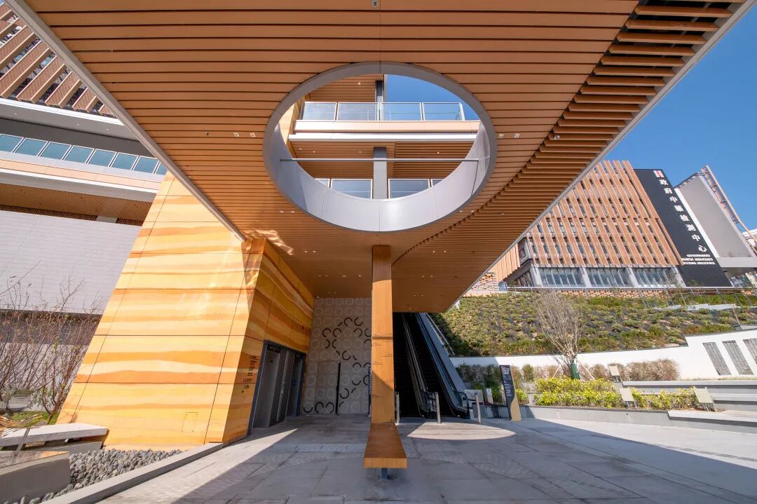 该项目依山傍海而建,以“天人合一、道法自然”为核心、“阴阳五行”为理念,深度融合中国传统建筑、中医药文化、自然环境与医疗科技,通过建筑形态诠释中华文化的“精气神”。中医医院入口广场贯穿四时节气之妙,以日晷观影开启中医文化之旅。外设门楼,青铜宝盒承古鉴今,中庭构建“天圆地方”布局,五行相生之势,与自然光影、历史符号、地理标志交相辉映;中药检测中心以“正本清源”为教育宗旨,设有木、火、水、土、金五大实验室,标本馆陈列3500份珍贵标本。中央园圃左侧是衔接中医医院的五行相生花园,右侧是由检测中心延伸而来的“神农本草园”,栽种逾180味中草药,实现科研与教育双轨并行。连接医院与检测中心的长廊设计融入百子柜元素,随光影流转,一步一景,让中医文化可触可感。