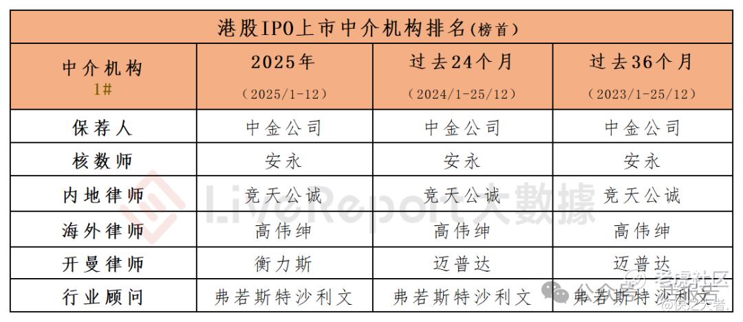 中金、中信、华泰三强争霸,竞天公诚三年蝉联,沙利文稳居榜首,深度揭秘港股IPO中介江湖。