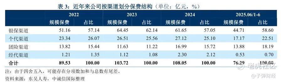 中诚信国际评级报告中显示,在银保渠道方面,截至2024年末,东吴人寿共与24家银行建立合作,包含国有银行、股份制银行及城农商行,其中邮储银行、建设银行及苏州银行的保费贡献度合计在70%左右,业务集中度处于较高水平。