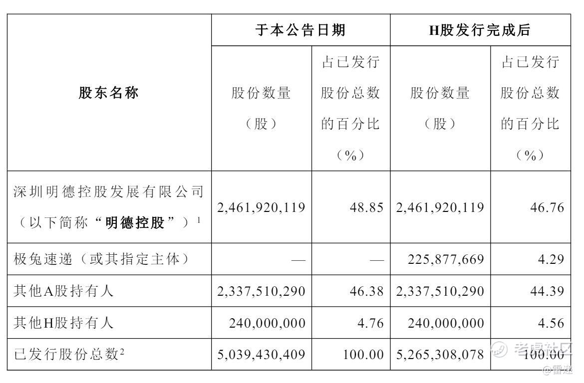 截至本公告日期,极兔集团未持有公司股份。本次H股发行完成后,极兔集团将持有225,877,669股本公司股份,占H股发行后经扩大的顺丰控股已发行股份总数(包括库存股)的约4.29%。