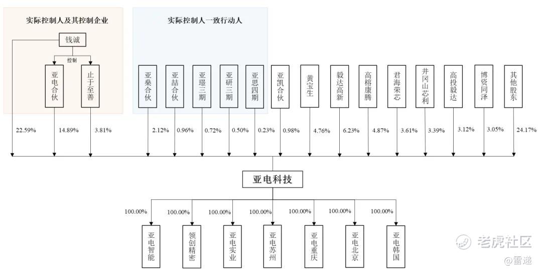 杜建生系亚电科技员工及钱诚配偶之弟,亚燊合伙、亚喆合伙、亚璟三期、亚研三期、亚思四期系杜建生控制主体,合计持有4.52%的股份。