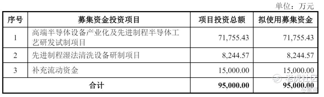 亚电科技原计划募资9.5亿元,其中,7.18亿元用于高端半导体设备产业化及先进制程半导体工艺研发试制项目,8245万元用于先进制程湿法清洗设备研制项目,1.5亿元用于补充流动资金。