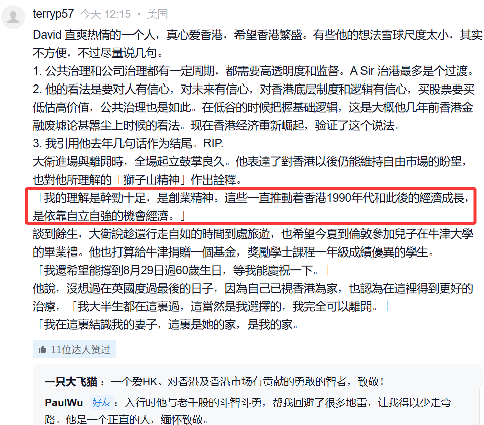 今日缅怀一下“股坛长毛”,香港会变得更好,需要依赖更多正义有志之士,“狮子山精神”