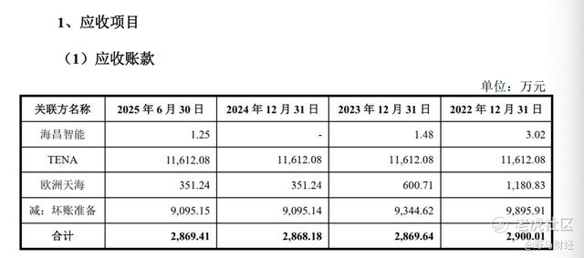 然而,这次资产剥离似乎并未理清债务。2024年末,天海电子对TENA单独计提了高达8744万元的坏账准备,账面应收余额达1.16亿元。这笔款项从2022年底拖欠至2024年底,几乎分文未收回。