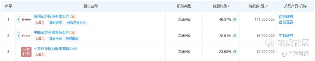 天眼查显示,中邮基金前三大股东分别是首创证券(持股46.37%)、中邮证券(持股28.61%)以及三井住友银行股份有限公司(持股23.68%)。