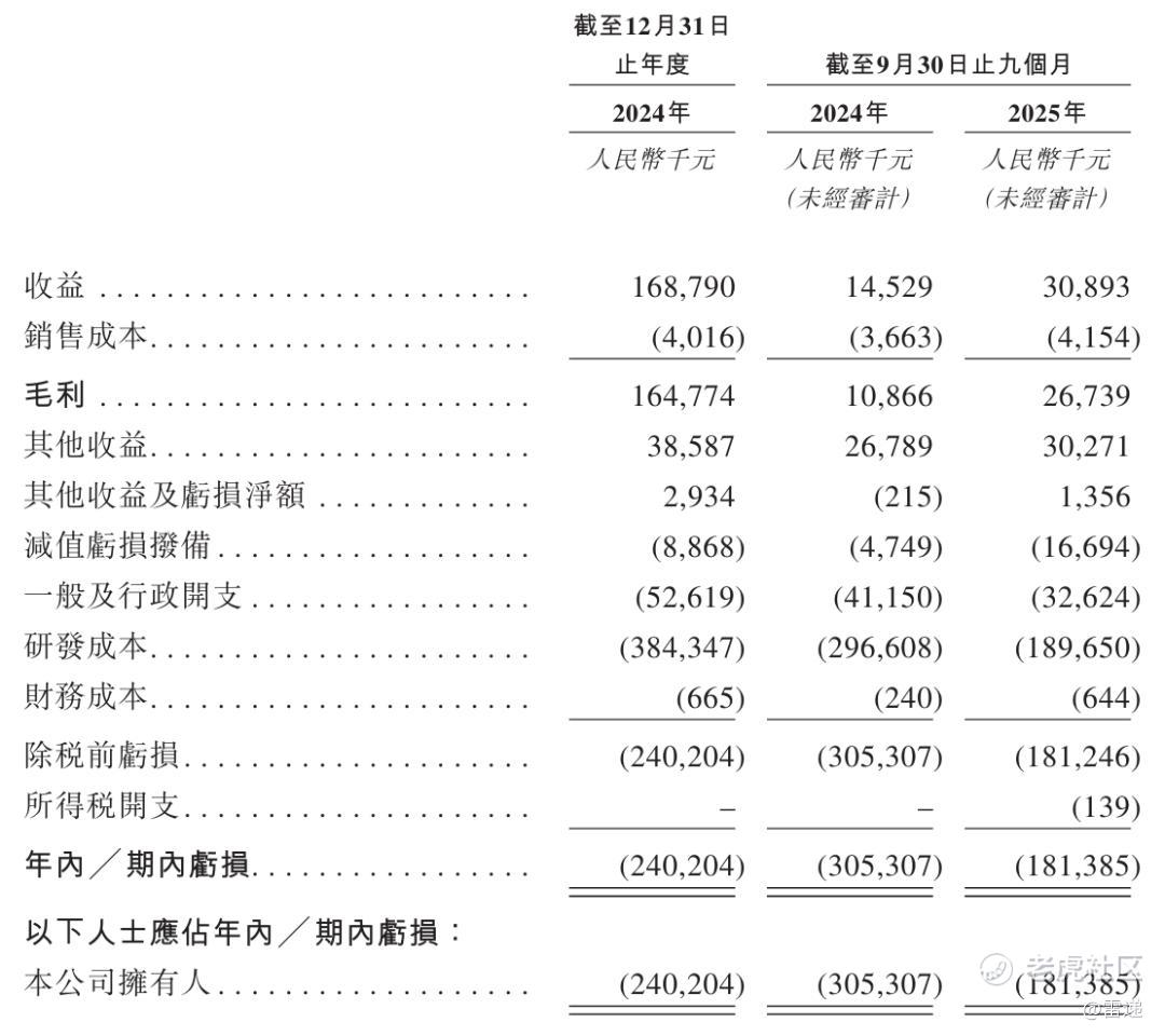 益方生物主要是研发成本高,益方生物2024年研发开支为3.84亿元,2025年前9个月研发开支为1.89亿元,上年同期研发开支为3亿元。