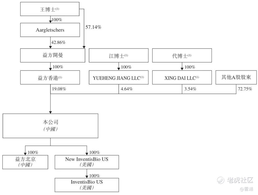IPO前,王耀林博士通过InventisBio持股为19.08%,YUEHENG JIANG持股为4.64%,XING DAI LLC持股为3.54%,香港中央结算有限公司持股为2.8%,ABA-Bio(Hong Kong)持股为1.92%;