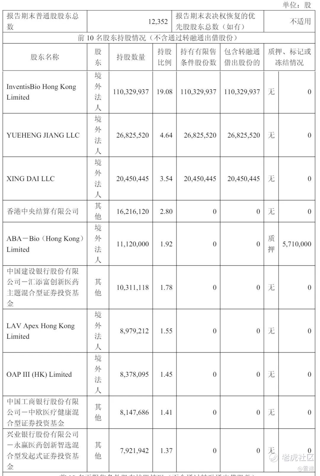 中国建设银行股份有限公司-汇添富创新医药主题混合型证券投资基金持股为1.78%,LAV Apex Hong Kong持股为1.55%;