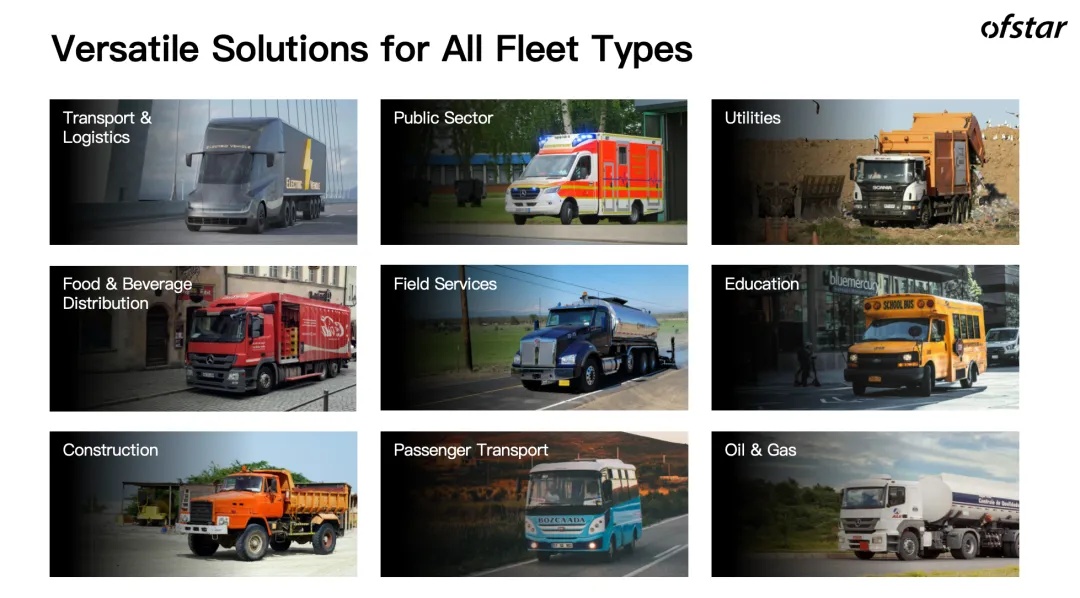 随着AI技术的快速发展,车辆及其运营数据已成为企业极为重要的资产。Ofstar AI Fleet软硬一体解决方案广泛适用于运输、物流、客运、建筑工程、矿业、市政服务及车辆保险等行业。