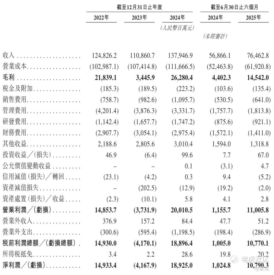 牧原食品2025年上半年营收为764.63亿元,较上年同期的568.66亿元增长34.5%;毛利为145.42亿元,上年同期的毛利为44亿元;经营利润为110亿元,上年同期的经营利润为11.56亿元;净利为107.9亿元,上年同期的净利为10.25亿元。