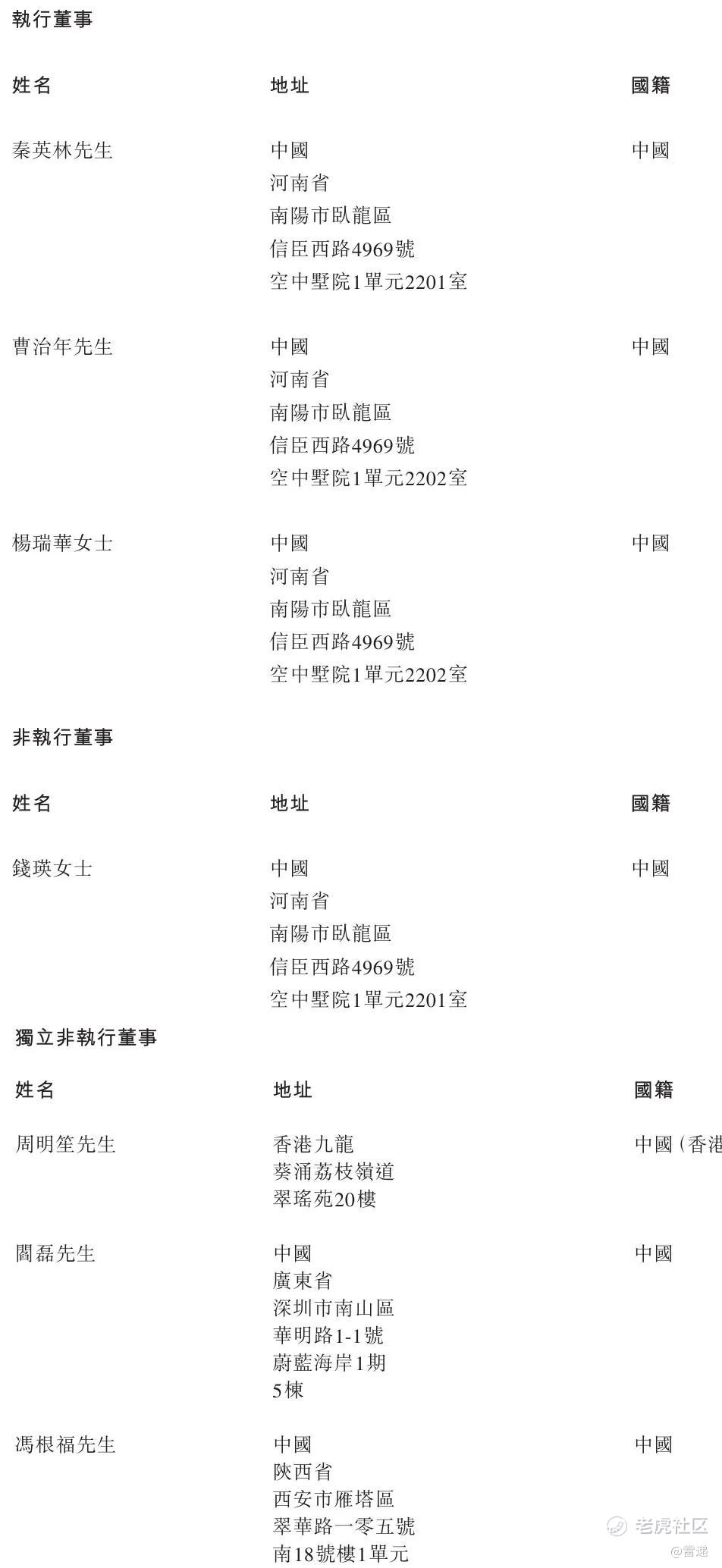 牧原食品执行董事分别为秦英林、曹治年、杨瑞华女士,非执行董事为钱瑛女士,独立非执行董事分别为周明笙、阎磊、冯根福。