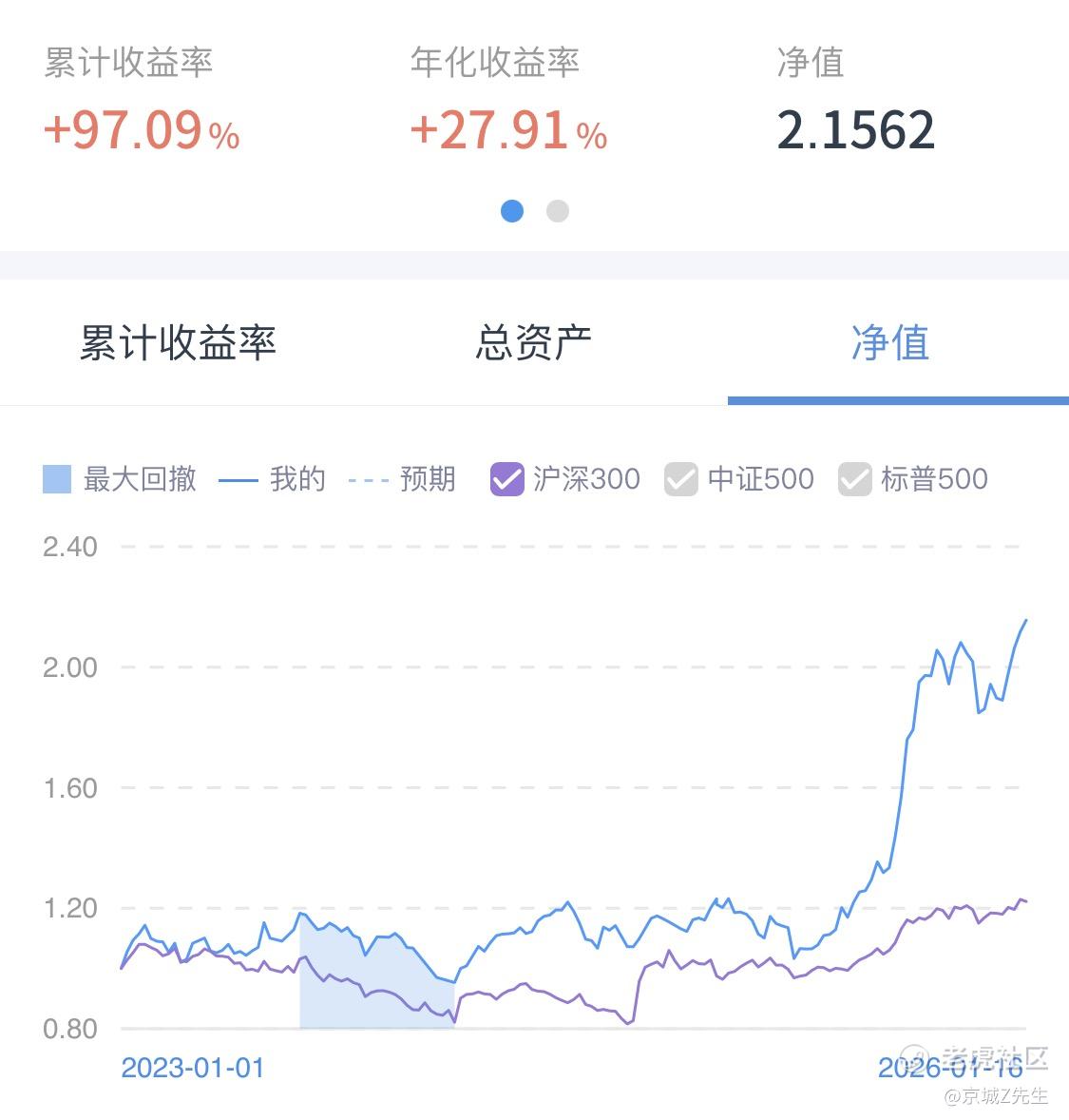 2026 年内沪深 300 指数 上涨 2.20%,2026 年内我的实盘 上涨 4.50%,本年初始净值2.06,本周净值2.16。