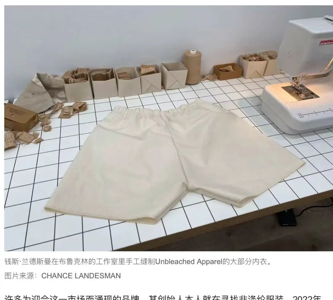 许多为迎合这一市场而涌现的品牌,其创始人本人就在寻找非涤纶服装。2022年底,钱斯·兰德斯曼(Chance Landesman)创办了Unbleached Apparel,这是一家生产包括内衣在内的未漂白棉质服装的公司。他发现,虽然很容易找到标榜为100%纯棉的内衣,但他知道这个数字通常指的是内裤的主体部分,而不包括腰头或缝合线。他说:“这算是一个警示。”他打电话给几个品牌的代表,询问他们的棉质内衣是否用涤纶线缝制,但都得不到令他满意的答复。兰德斯曼说,当他将购买的几条表面上是纯棉的内裤进行“燃烧测试”(一种用于鉴别织物纤维成分的方法)时,他发现了其他非棉质材料的存在。