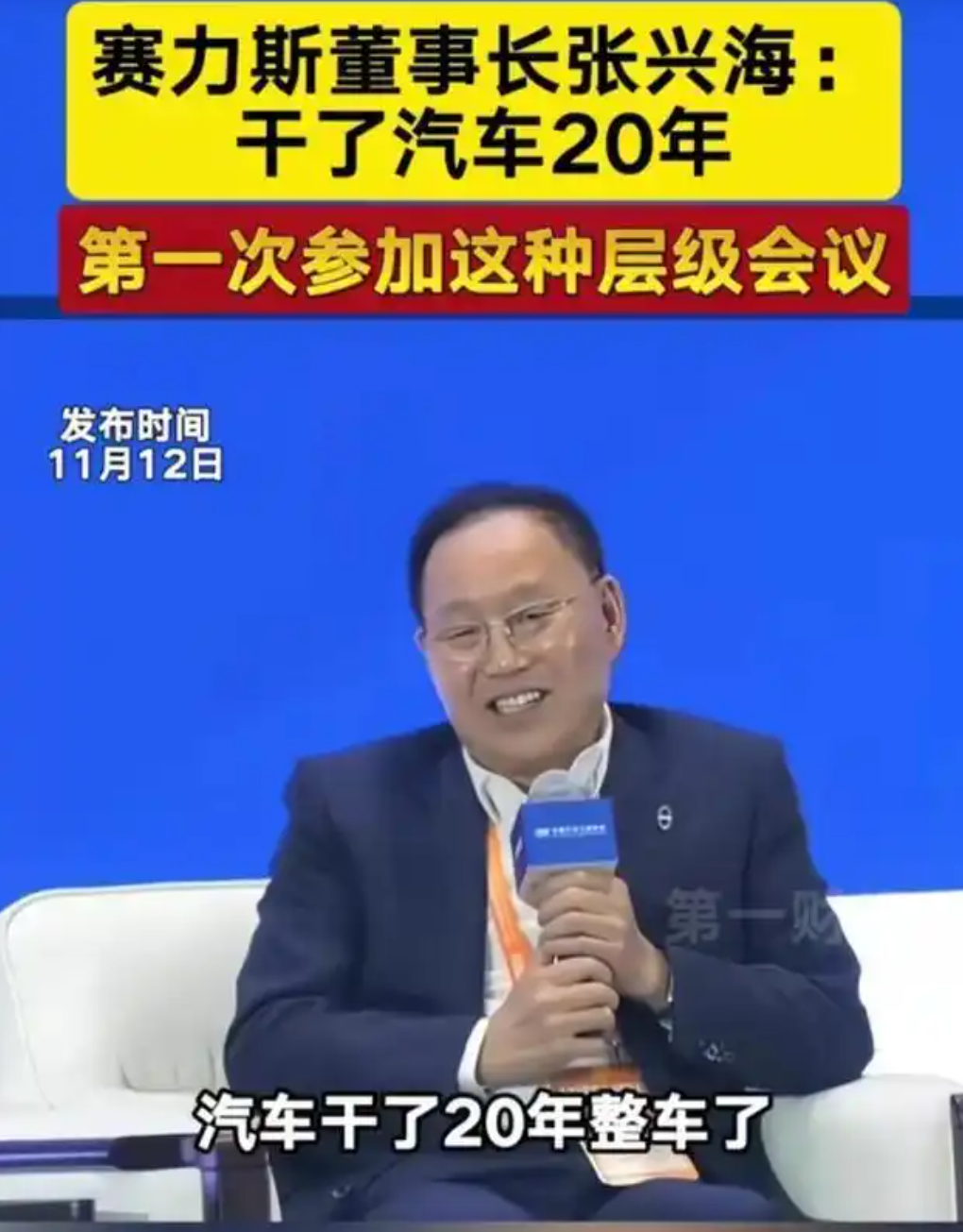 在这个国内汽车行业最顶级的会议上,他谦逊又兴奋的说:汽车干了20整年了,第一次参加这种层级会议。