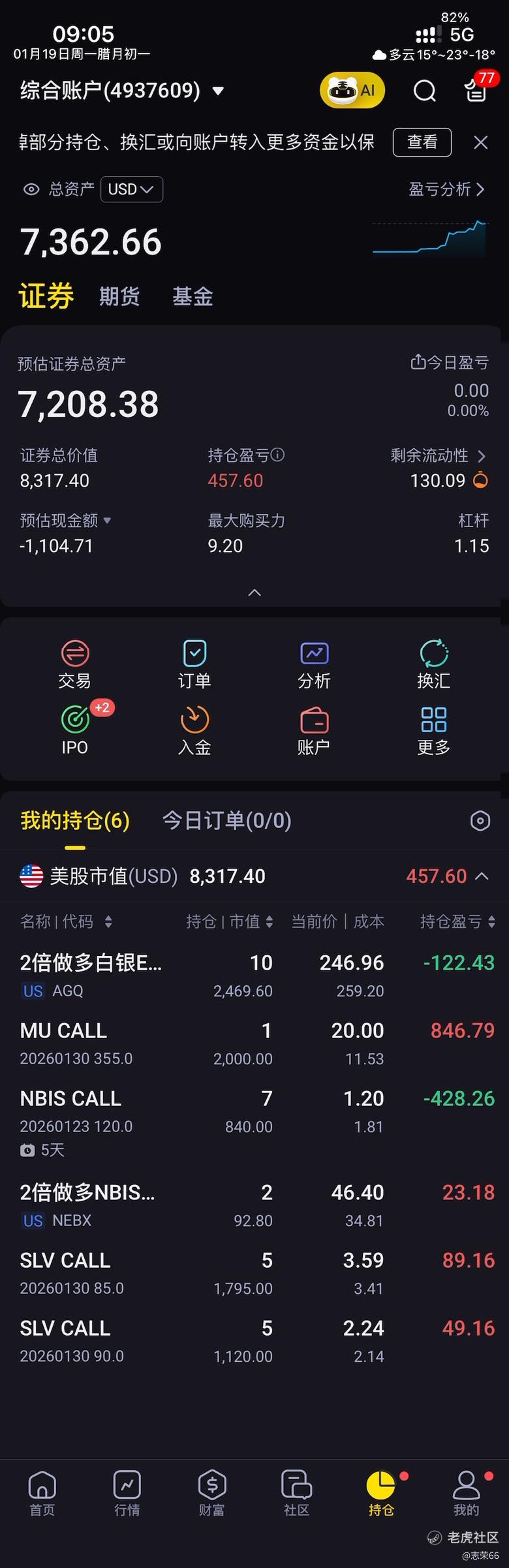 今天我的总资产能不能突破1w美刀就看白银了,期权还是不错的单车变摩托