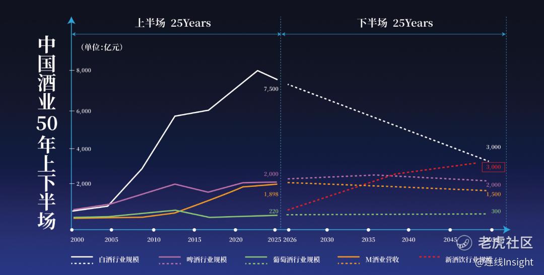 站在老酒饮退潮、新酒饮起势的关键节点,瓶子星球做出了关键认知:酒业市场化以来的25年,属于白酒主导、量价齐升、增量时代的上半场;从2025年开始,酒业告别上半场,步入存量竞争的下半场。