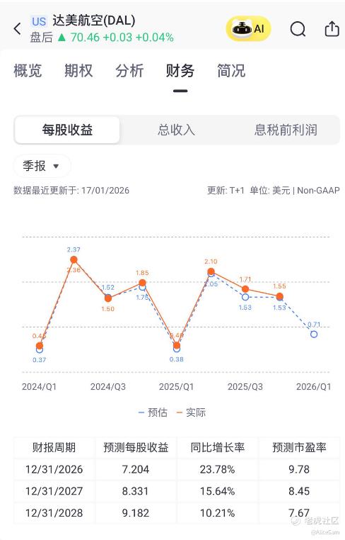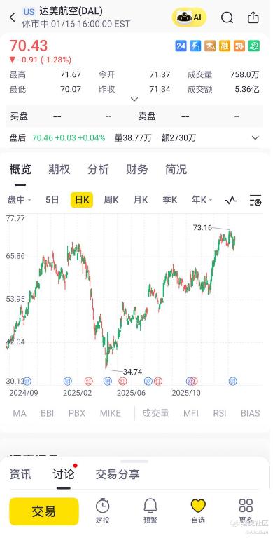 达美正从“疫情修复”走向“质量扩张”,46亿自由现金流是硬通货,20%的EPS增速是加速器,是一个非常值得关注起来的标的。如果要长期持有,我觉得目标价55-65美元比较合理,逢低加仓区间42-45美元(对应悲观情景预定价),用“股息+回购”收益做安全垫,就更加理想了。