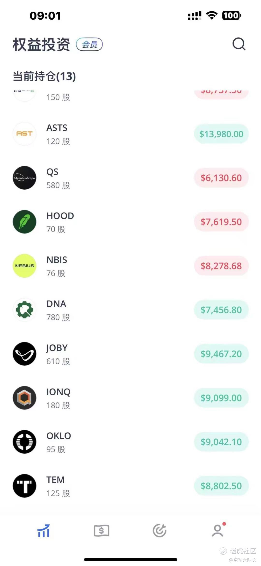 像FIGR,ASTS,RKLB这些涨多了,出来一部分也可以,当然也有可能出来后面继续上涨,像DNA,QS,这两个没有怎么涨,那也不会怎么跌,包括JOBY,IONQ也没有大涨,OKLO以前大涨现在也跌下来了。