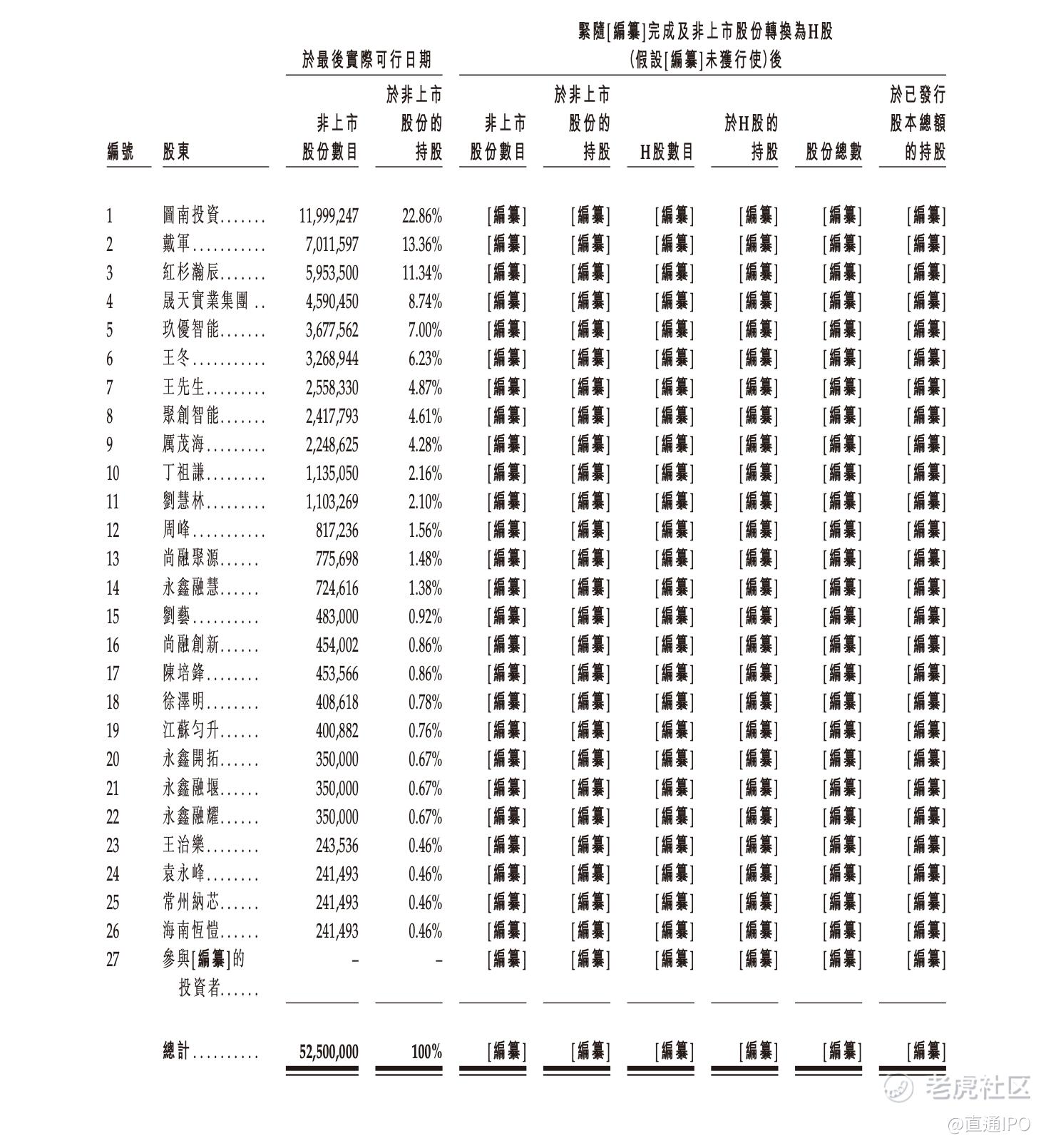 IPO前,玖物智能董事长、执行董事兼首席执行官王宏军控制39.34%的投票权。其中,他直接持股约4.87%,并通过图南投资、玖优智能及聚创智能(均由王宏军作为普通合伙人控制及管理,分别持股22.86%、7%、4.61%)合共控制34.47%投票权。