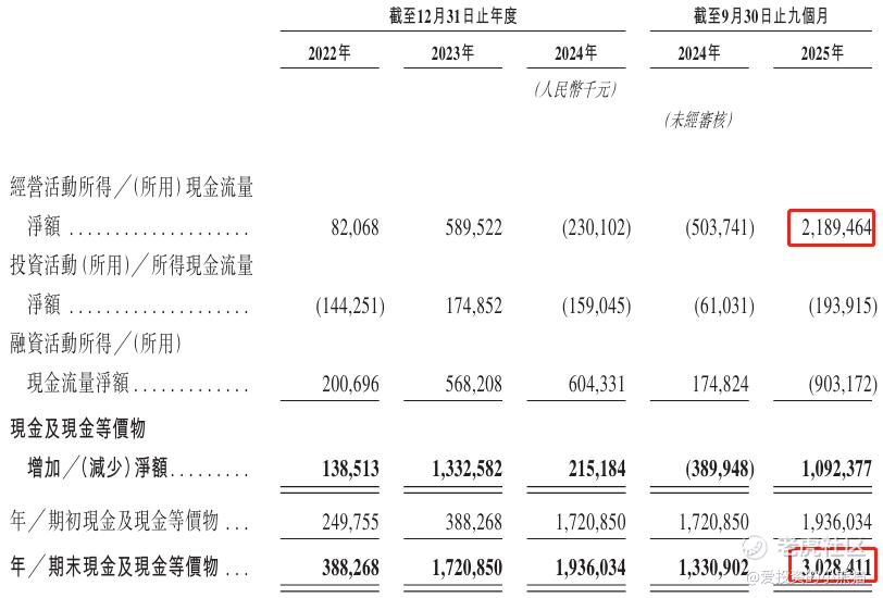 截至2025年9月30日,账上现金约人民币30.28亿元,经营现金流为21.89亿元。