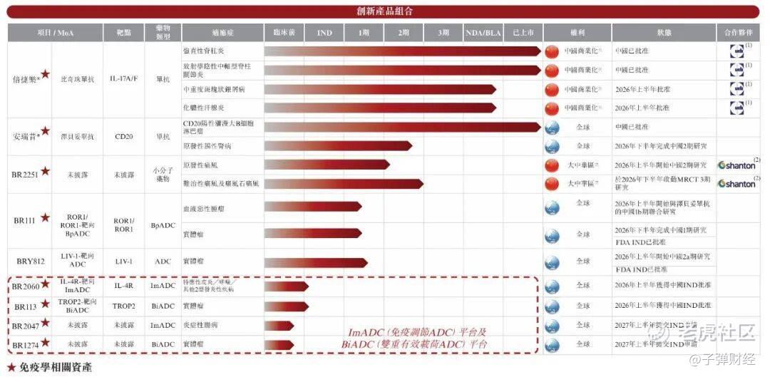 研发管线上,公司布局近10款产品,重点包括比奇珠单抗、已上市的泽贝妥单抗及在研的BR2251,并依托两个新一代ADC平台推进多项临床前项目。