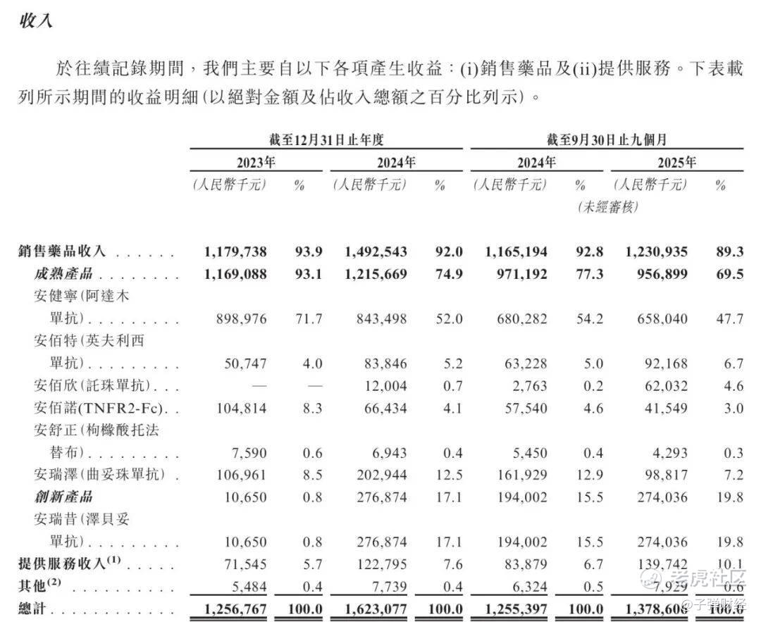 从营收结构上来看,成熟产品(主要为生物类似药)仍占主导,2023年至2025年前三季度收入占比分别为93.1%、74.9%和69.5%,虽持续下降,但依然是业绩支柱。同期,自研创新药占比从0.8%提升至19.8%,增长显著但整体规模仍有限。