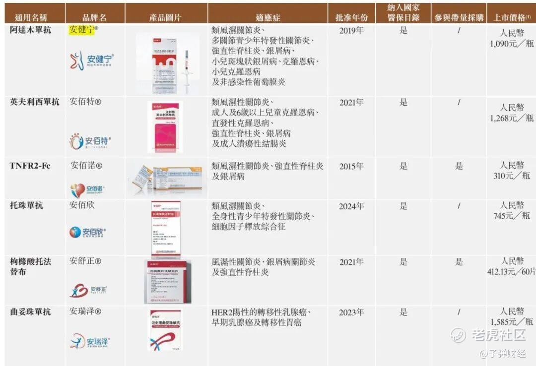 博锐生物旗下安健宁于2019年上市,其获批适应症包括类风湿性关节炎、多关节型幼年特发性关节炎、强直性脊柱炎、银屑病等。