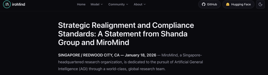 值得注意的是,在《战略调整与合规标准:盛大集团与MiroMind的联合声明》中就有这样一段表述:作为全球多资产投资公司盛大集团的子公司,MiroMind在全球治理框架下运营,优先考虑透明度并严格遵守不断演变的本地化监管标准。