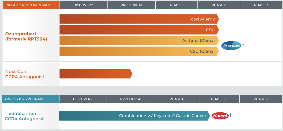 重点来了,RAPT Therapeutics的管线只有两款产品,ozureprubart(抗IgE抗体)和CCR4拮抗剂。