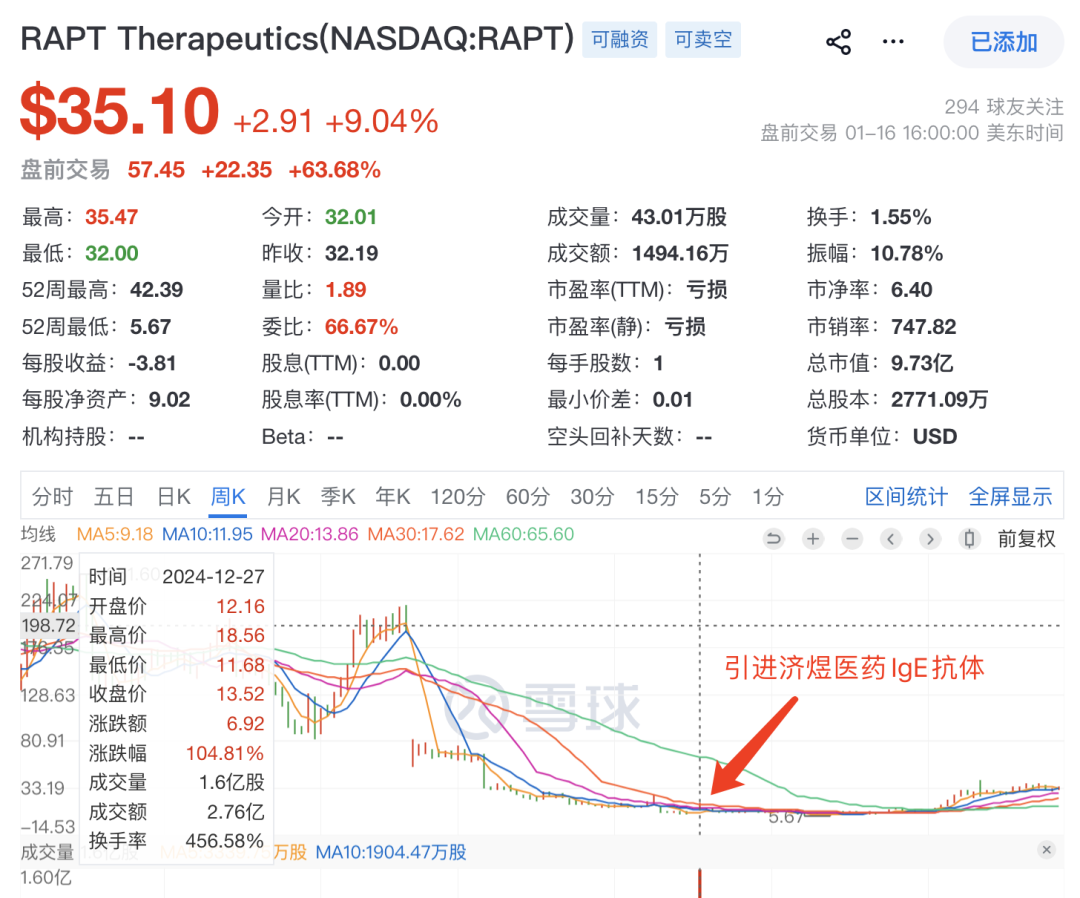 ozureprubart长效IgE抗体RPT904正是RAPT Therapeutics公司2024年12月从济明可信集团旗下的创新药子公司济煜医药引进的JYB1904的大中华区外全球权益。