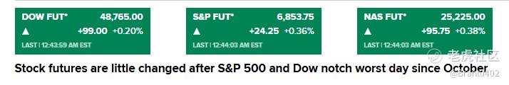 道指期货上涨0.20%,标普期货上涨0.36%,纳指期货上涨0.38%。