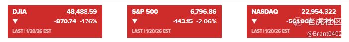 悲观派(资本战阵营):另一些人则担心,这次特朗普是“动真格”的。如果欧洲实施反制(如启动反胁迫工具),或者全球资本持续由于信任问题回避美元和美国资产,那么美股的高估值将面临严峻的修正,周二的暴跌可能只是一个开始。