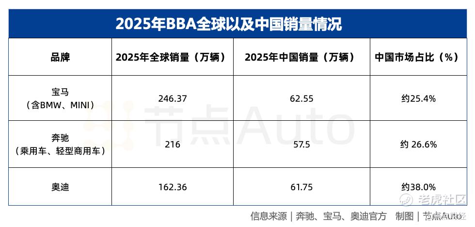 这份2025年的销量成绩单,直白地暴露了三者对中国市场的深度依赖: