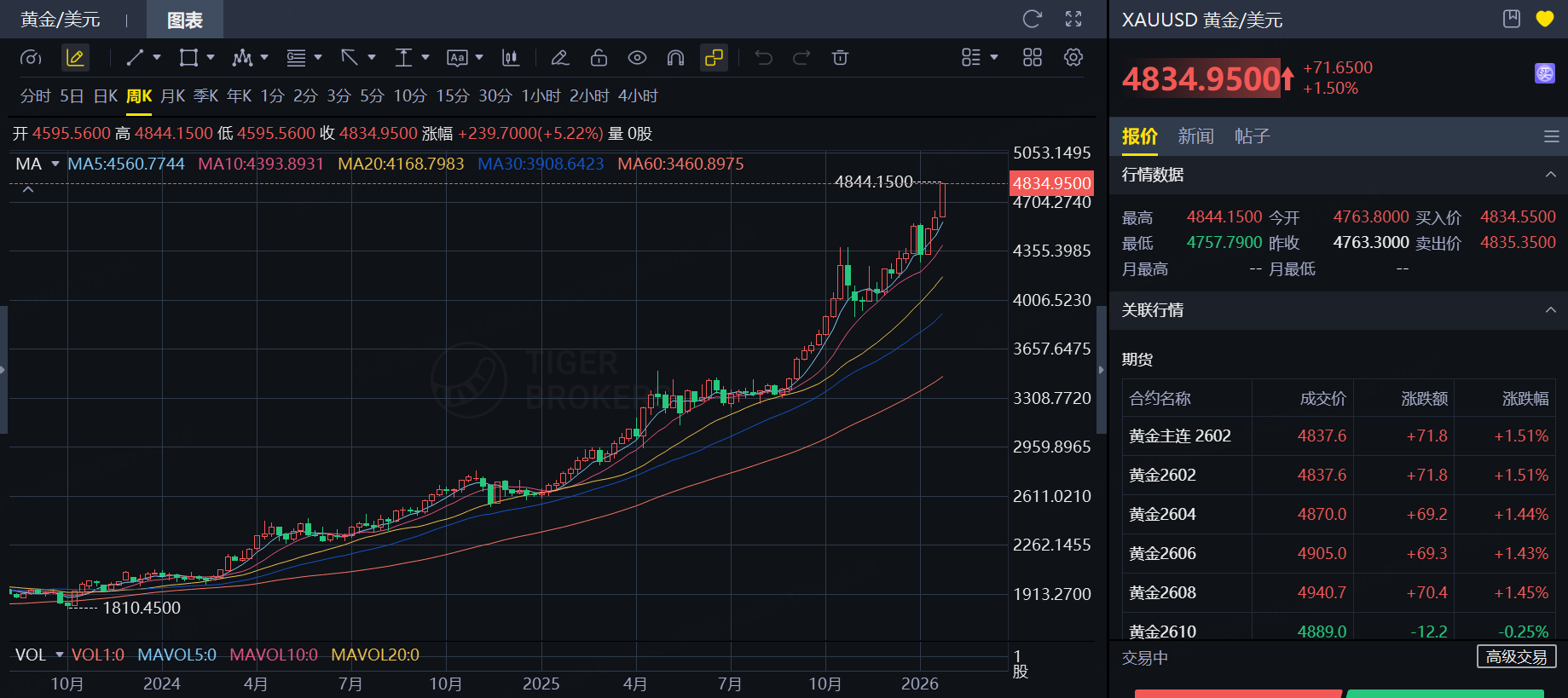 最近,黄金开启疯涨模式,接连突破4600、4700、4800美元大关,直奔5000美元而去: $黄金/美元(XAUUSD.FOREX)$