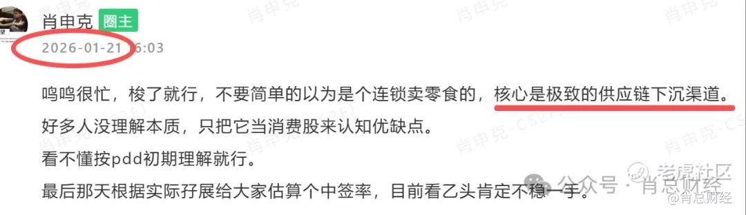 想起了打新蜜雪那时候,因为茶百道的破发,蜜雪一堆人不看好,全部当消费股看待,压根没懂蜜雪的核心不是“消费”而是“供应链”,当时记得印象很深,暗盘走的不好,我第一时间捞货并分享。